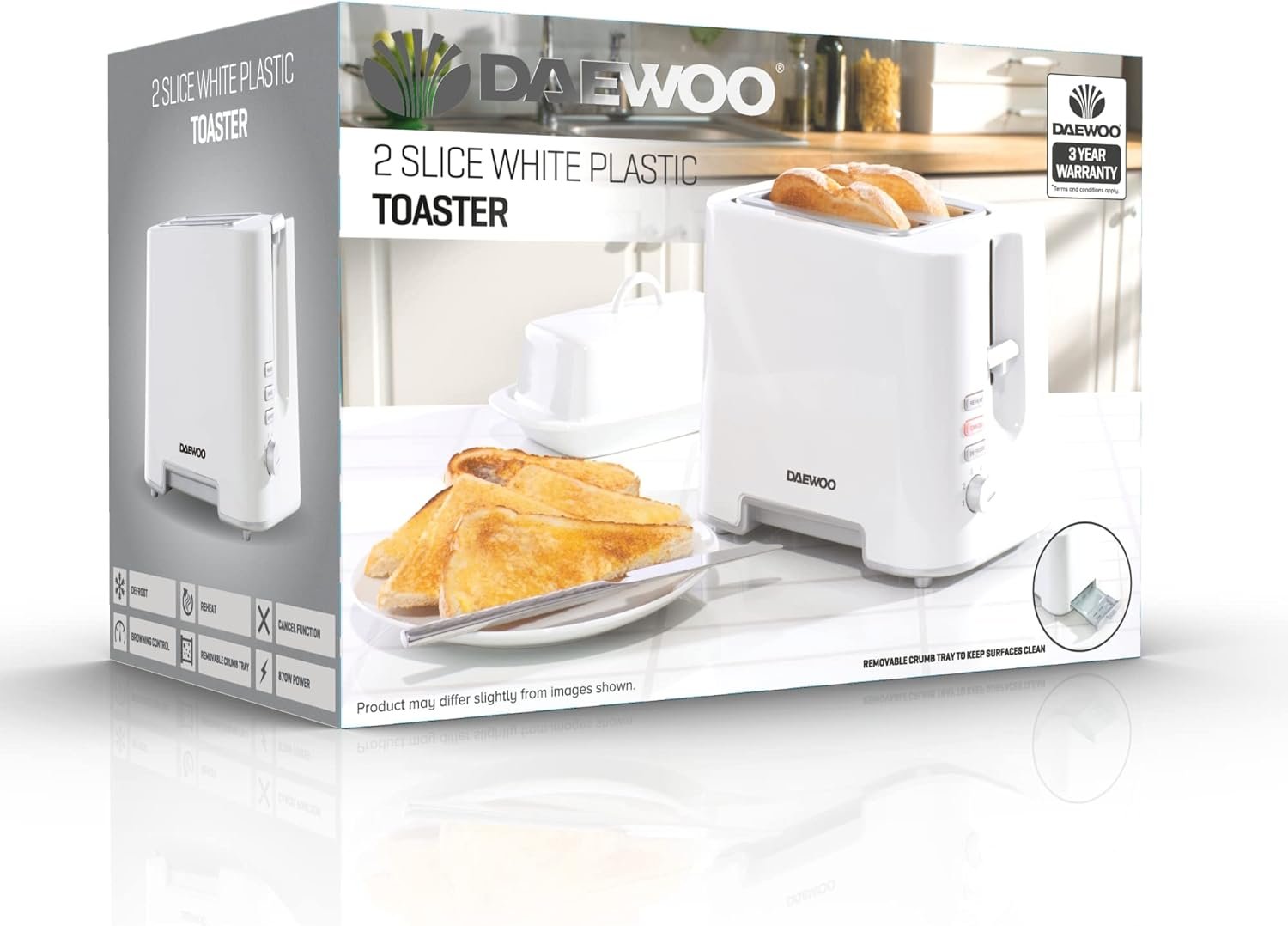 • CLEAN AND TIDY – The removable crumb tray ensures easy cleaning and mess-free countertops after every use