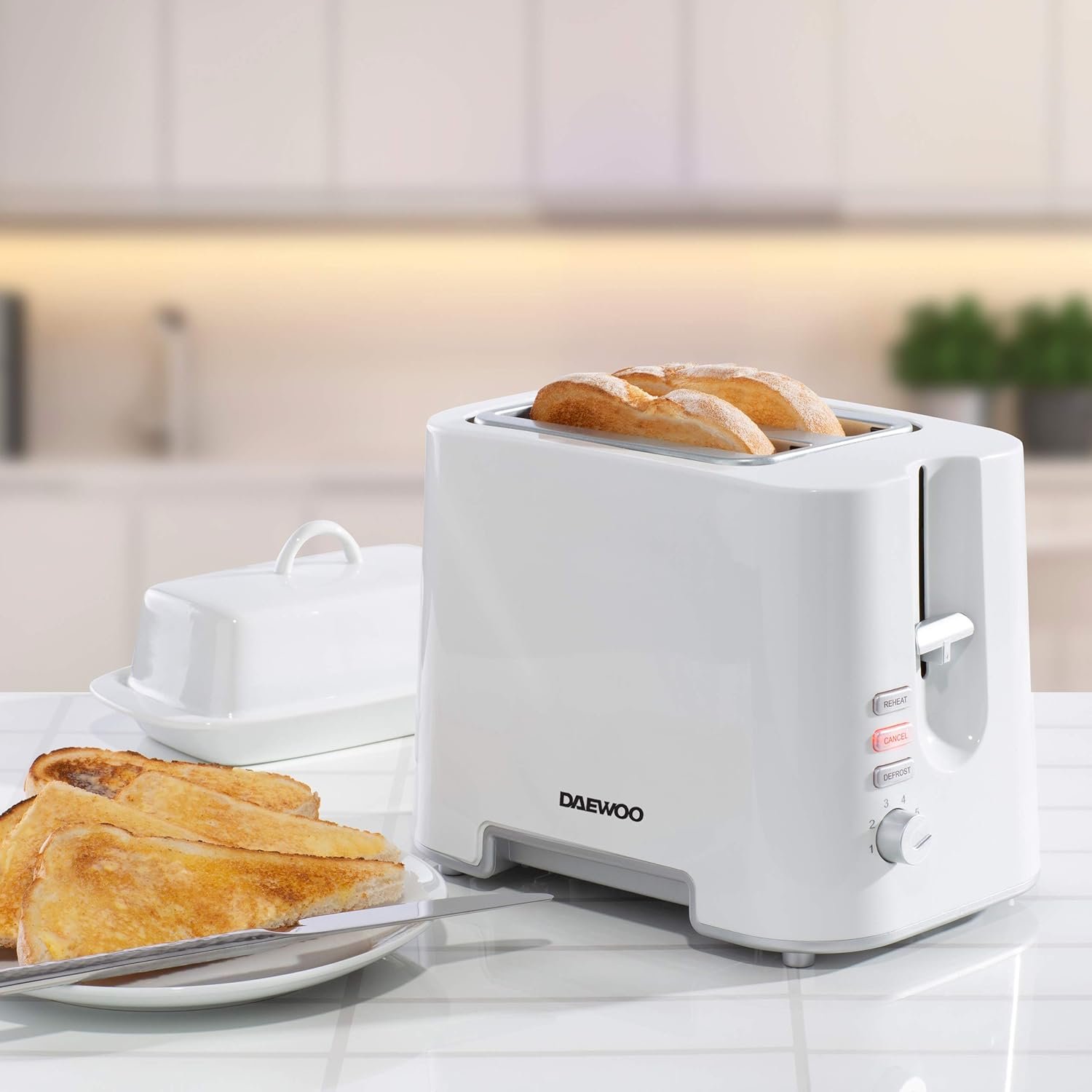 Daewoo 2 Slice Toaster – White, Compact