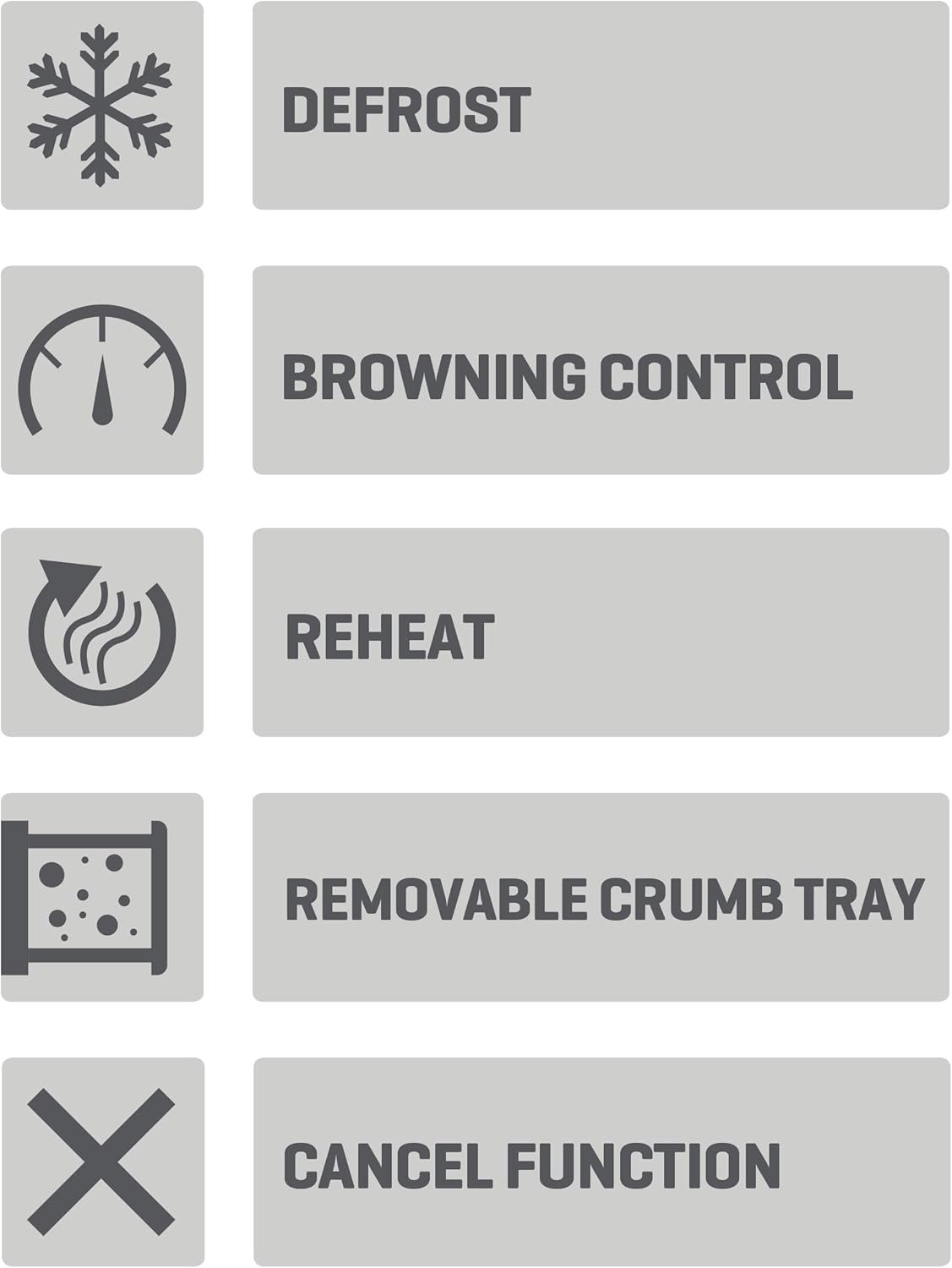 • MULTI-FUNCTION SETTINGS – Features Defrost, Reheat, and Cancel functions for ultimate flexibility, perfect for frozen bread or reheating forgotten toast