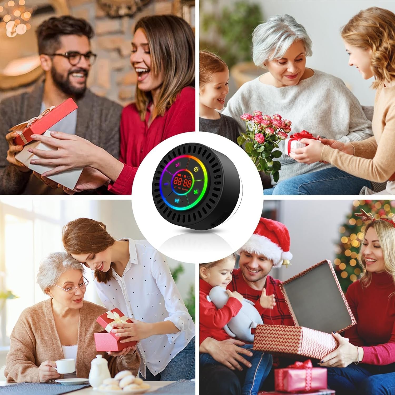 • LED display and clock display, seven-color atmospheric light show: Built-in lighting modes include quick flash, breathing light and seven-color always-on mode. A short press of the power button activates the light. Access the time by pressing the M button, then press and hold the play button to adjust the time on the LED display sequentially!