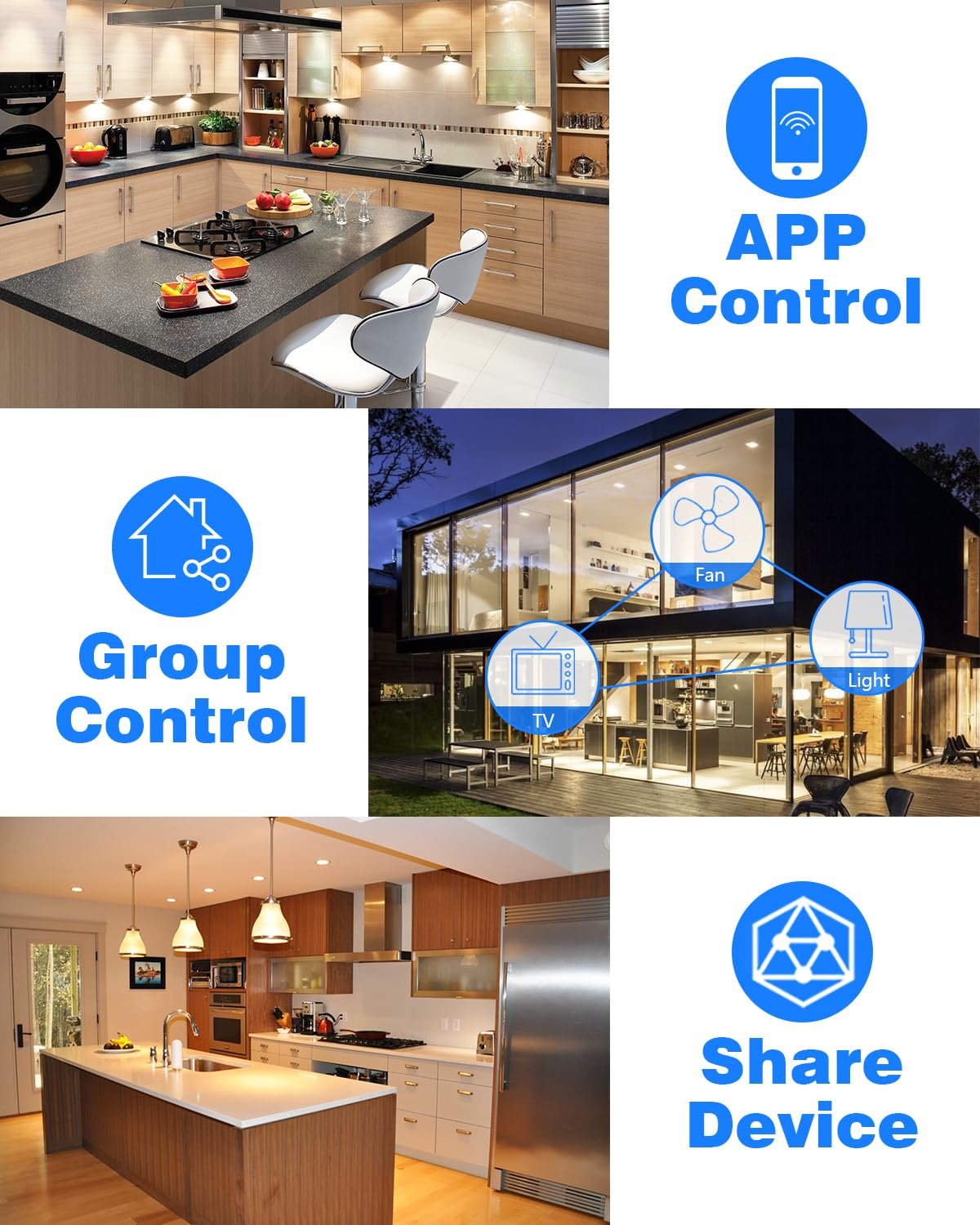 • 【Group Control & Sharing】To create a smart plug group on App, like bedroom plug, kitchen plug, living room plug, add 3 in 1, one tap to control to make life easier. Also, share with your family and control the smart plug with multiple devices, smart home and smart life!
